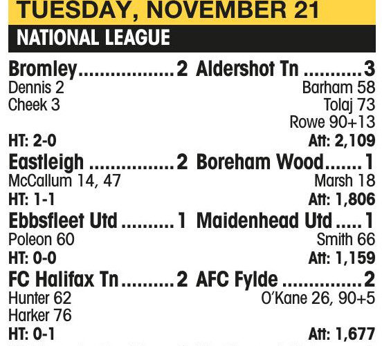 NATIONAL LEAGUE SOUTH: Chelmsford City 0 Maidstone Utd 1 (Amantchi 22)