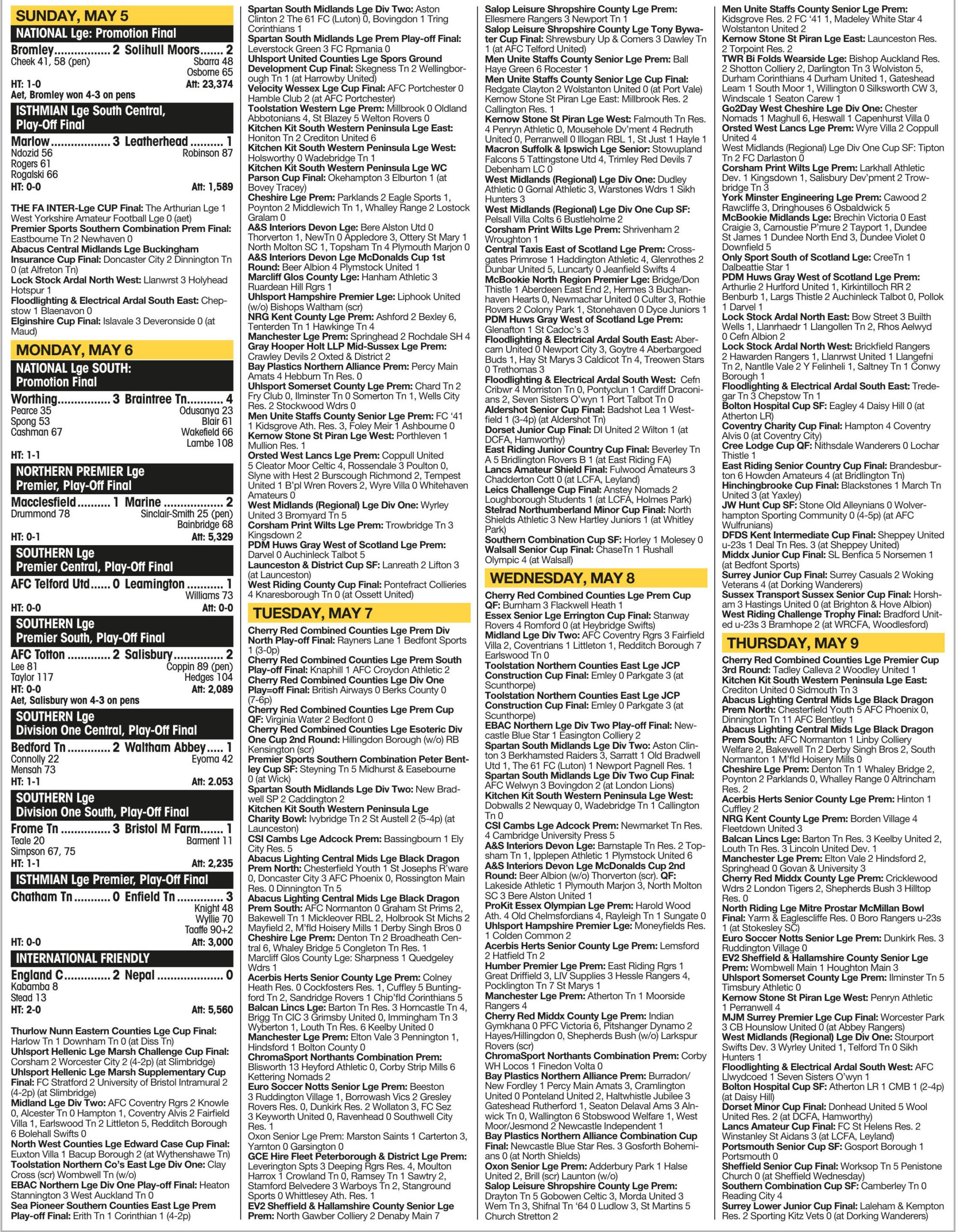 MIDWEEK RESULTS