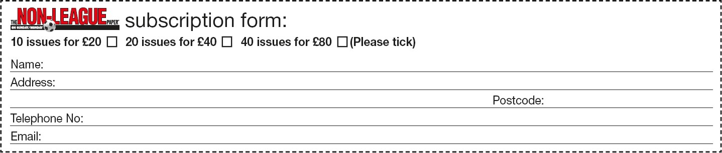 You can subscribe to The Non-League Paper. Either fill out the form below and send your cheque for £20, £40 or £80 made out to The Football Paper Ltd to: Subscriptions, The Non-League Paper, Tuition House, St George’s Road, Wimbledon, SW19 4EU or subscribe online at www.thenonleaguefootballpaper.com and you will receive The Non-League Paper through your letter box by first class mail.