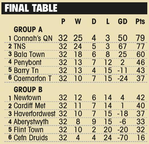 In the Play-Off Conference, Aberystwyth Town went on the rampage at Latham Park against Conference winners Newtown with goals from Matthew Jones, David Evans, Owain Jones and Harry Franklin sealing an impressive 4-0 win.