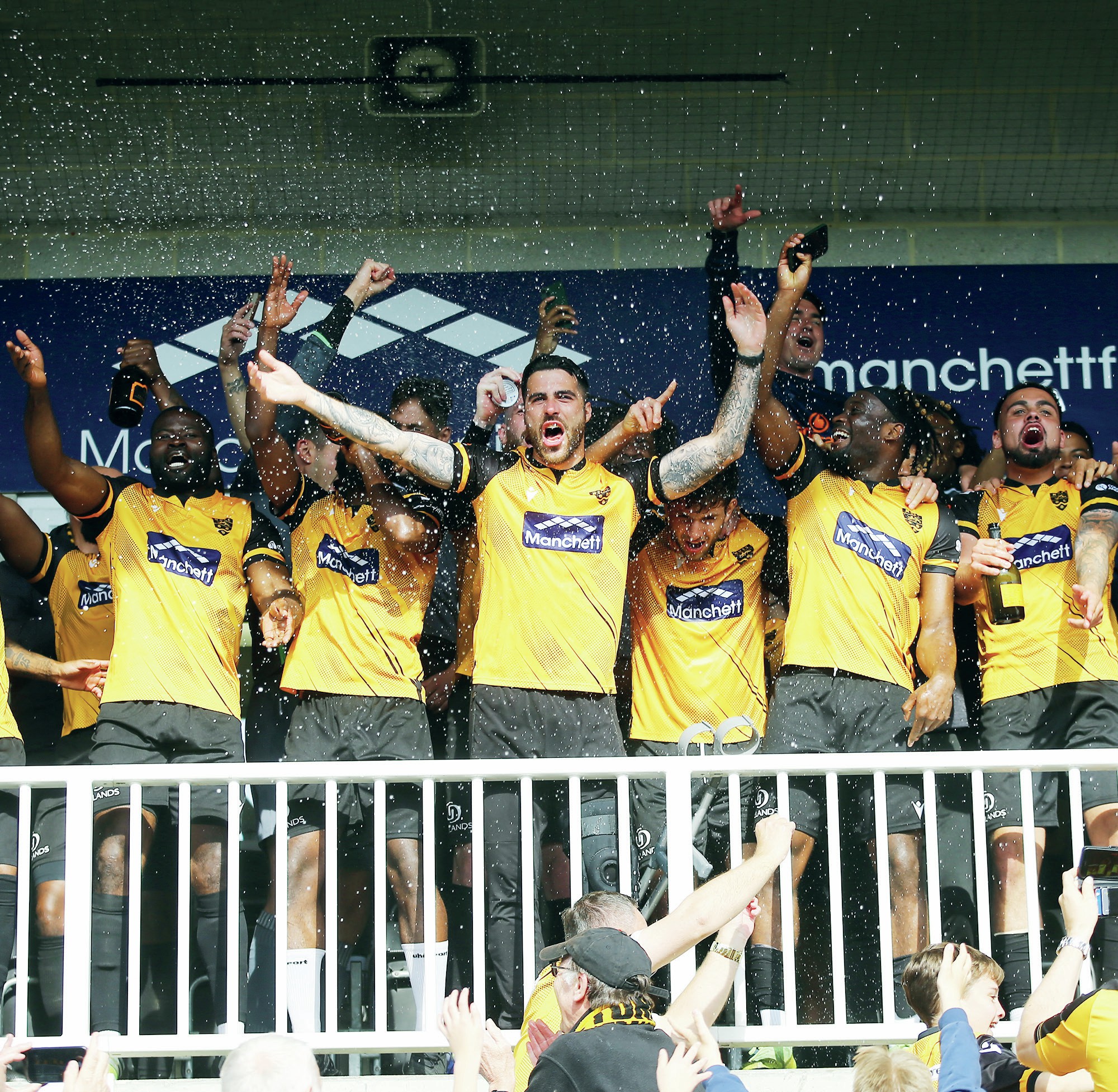 HOW THE STONES ROLL: Maidstone players celebrate winning the National League South title