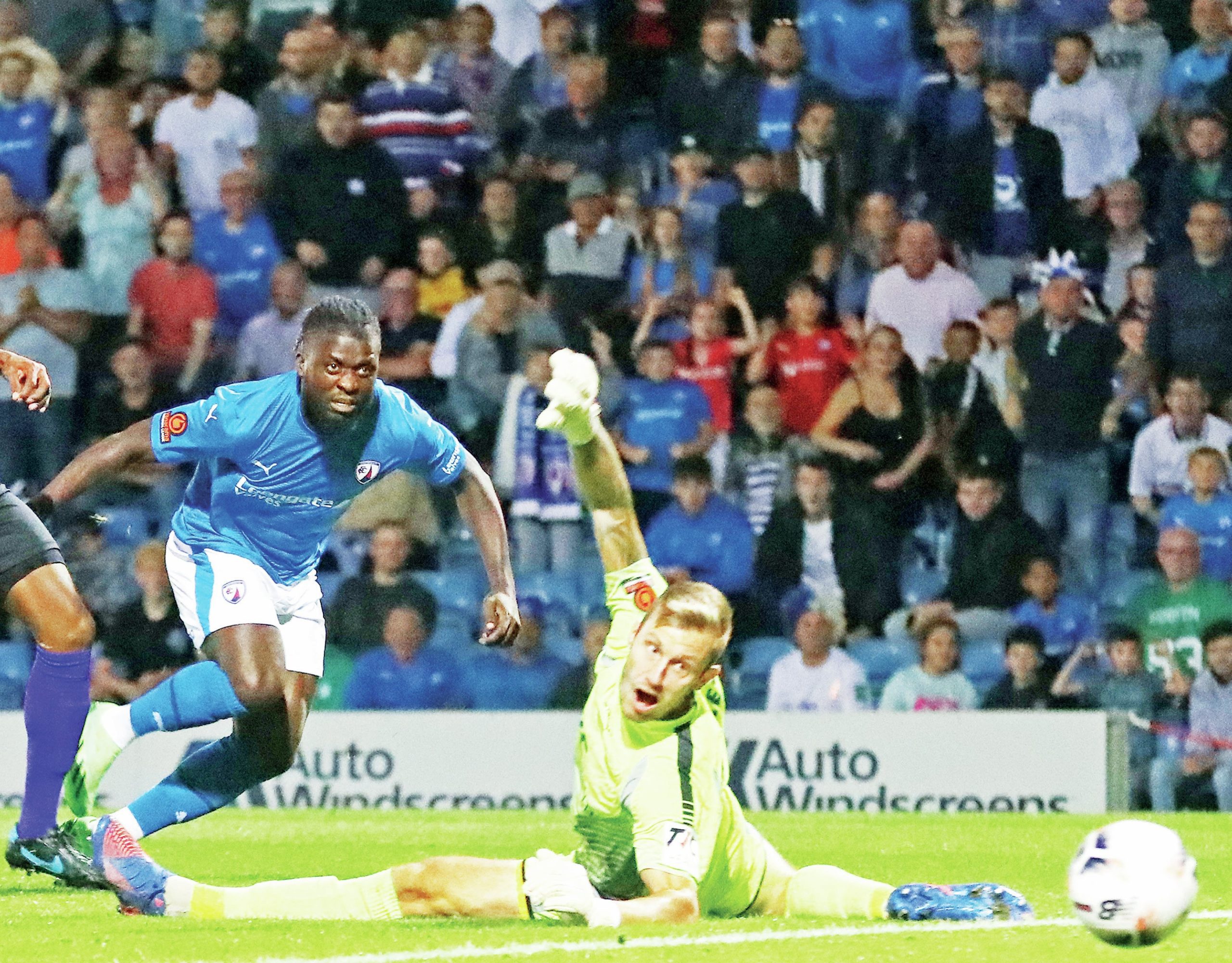 BACK IN BUSINESS: Chesterfield’s Kabongo Tshimanga as many games since returning from a longterm injury, right