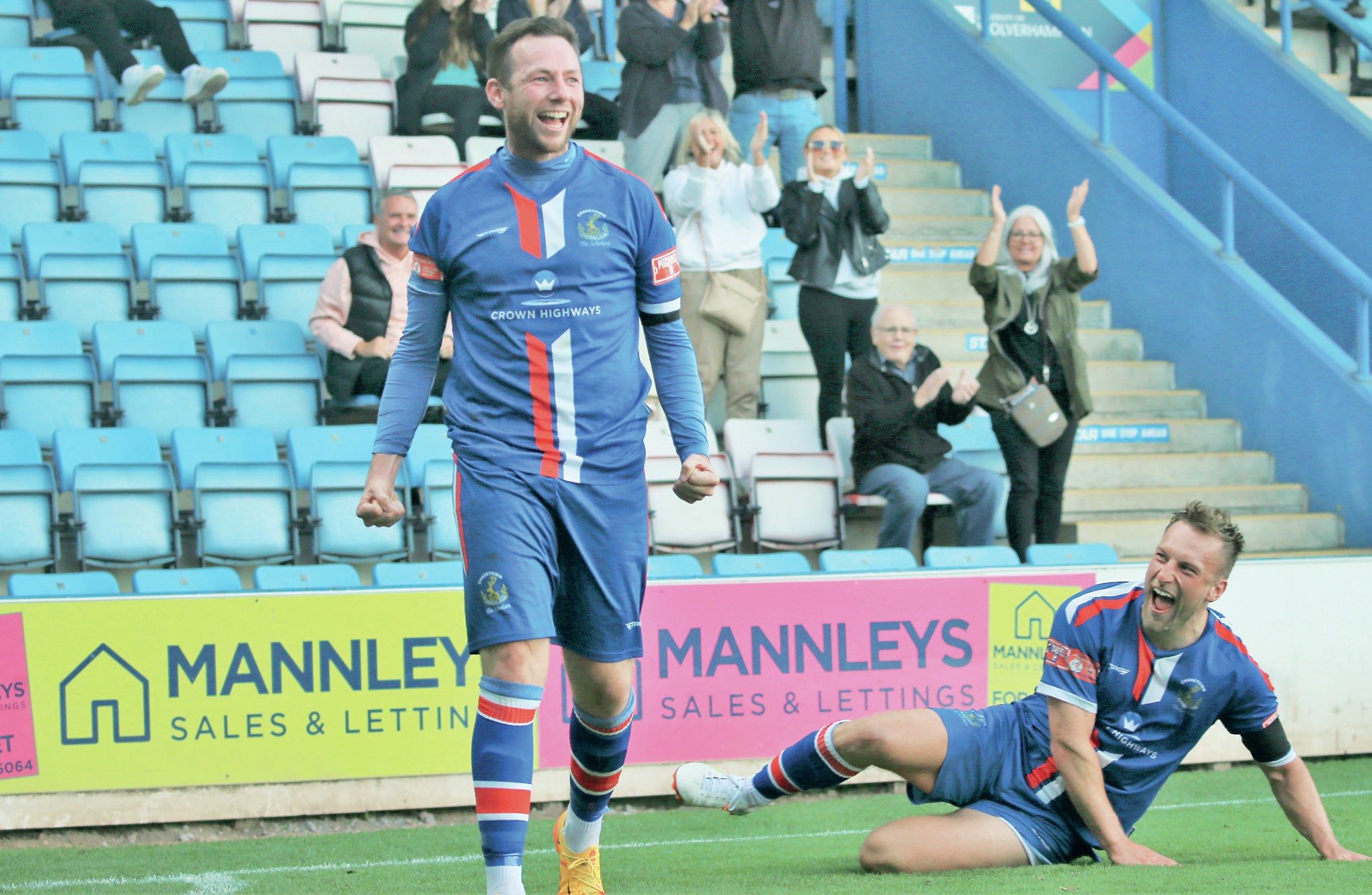 WE’RE ON OUR WAY: Jack Langston, left, celebrates scoring Chasetown’s fourth goal as they stunned AFC Telford United in the FA Cup