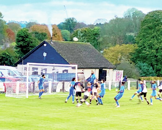 I emerge from the bar with my burger and chips just as Hilltop open the scoring. I am just in time to see the ball sail over the Amersham keeper’s flailing hand from a crosscum-shot. My mate Bryan is not overly impressed.