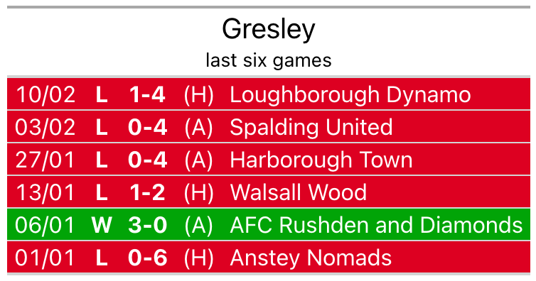 Gresley are 19th in the table after 28 games, of which they have won four and drawn six, earning 18 points.