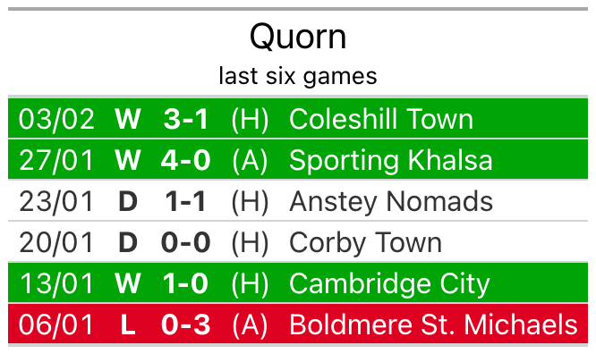 Quorn beat Coleshill Town 3-1 last time out, on February 3.