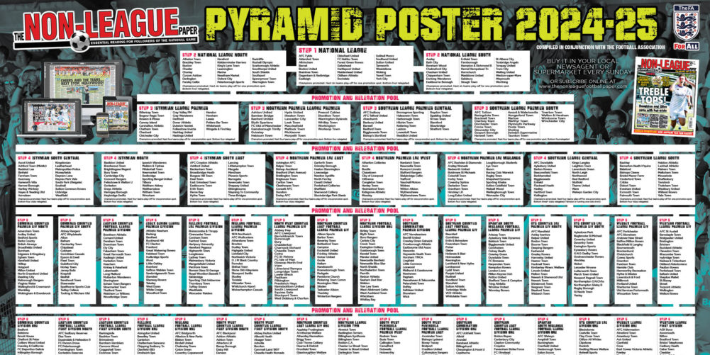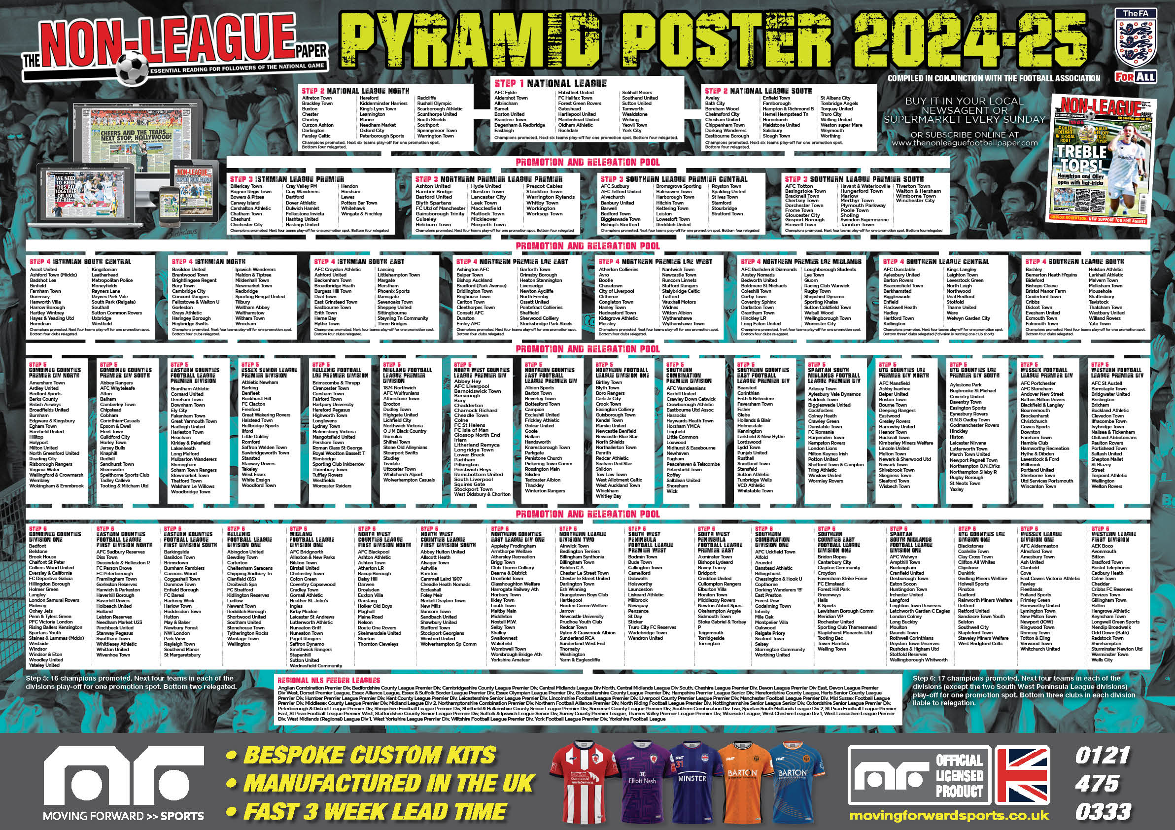 The poster is perfect for your clubhouse or changing room and covers the Non-League Pyramid from the Vanarama National League down to Step 7.