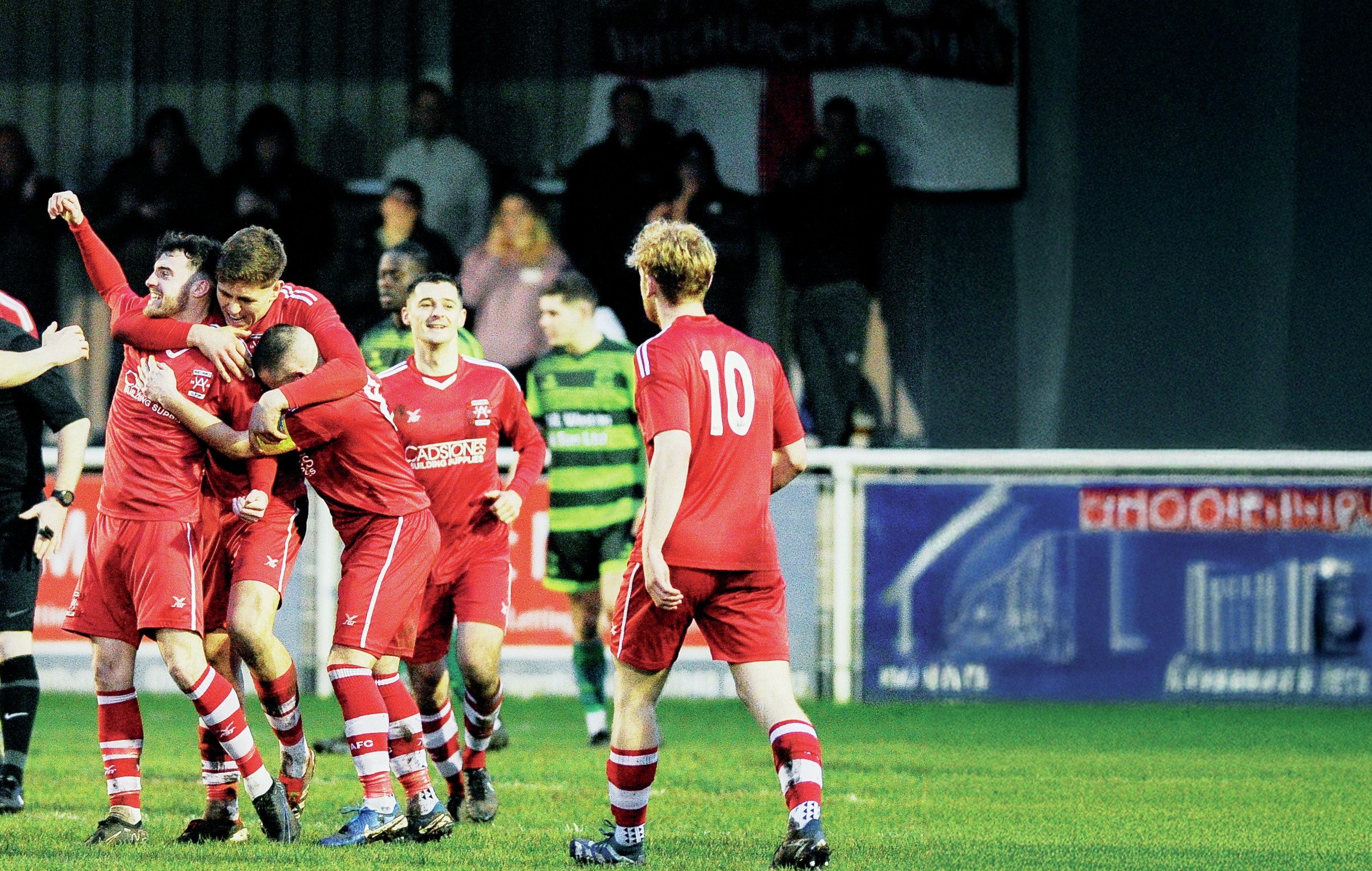 TWO GOOD: Whitchurch Alport’s Harry Bower celebrates making it 2-0