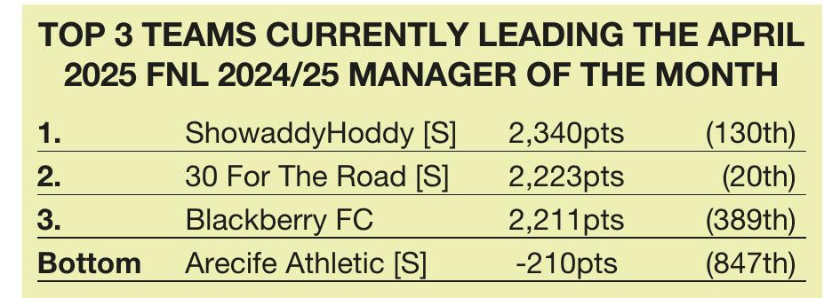 We are just four days away from our eighth and final Man-ager of the Month of this season's Fantasy Non-League, for the month of April.