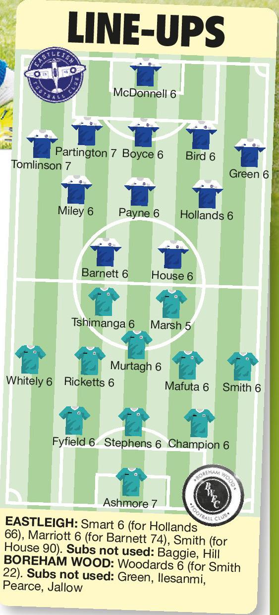 EASTLEIGH keep a play-off destiny in their own hands with a last-gasp penalty winner – although manager Ben Strevens claims the crucial result was ‘harsh’ on Boreham Wood.