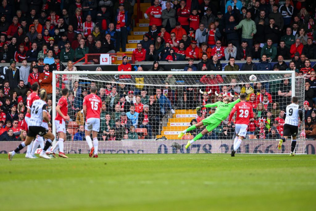 Just when Wrexham thought they had turned the tide, back came Notts County. Foster brilliantly tipped Sam Austin’s effort over the bar but Kyle Cameron stooped low, unmarked at the far post, to head home the resulting corner.
