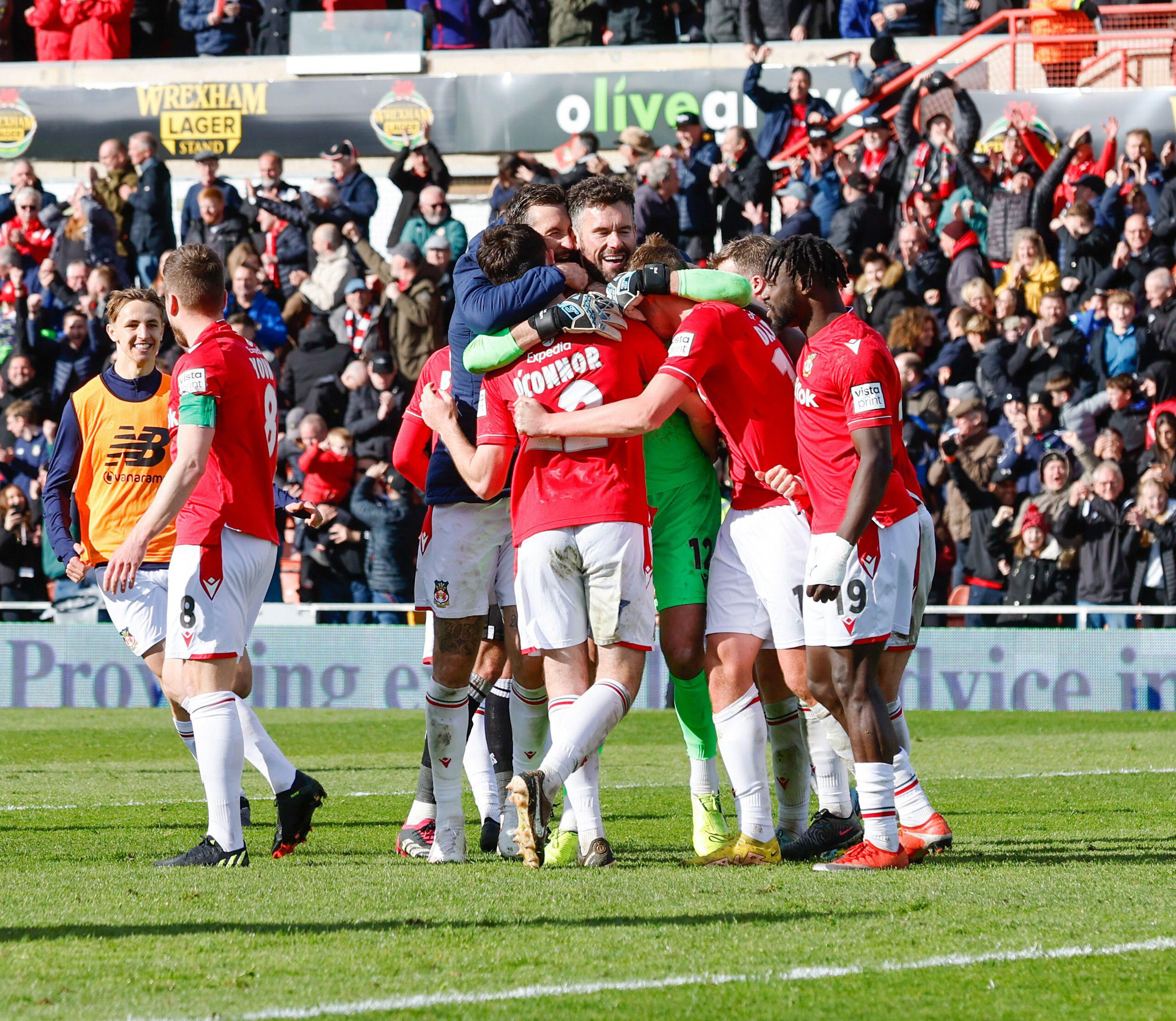 O’Connell rattled the crossbar with a tremendous volley from Barnett’s cross before Wrexham went in front on 70 minutes, Jacob Mendy turning in Mullin’s cross.