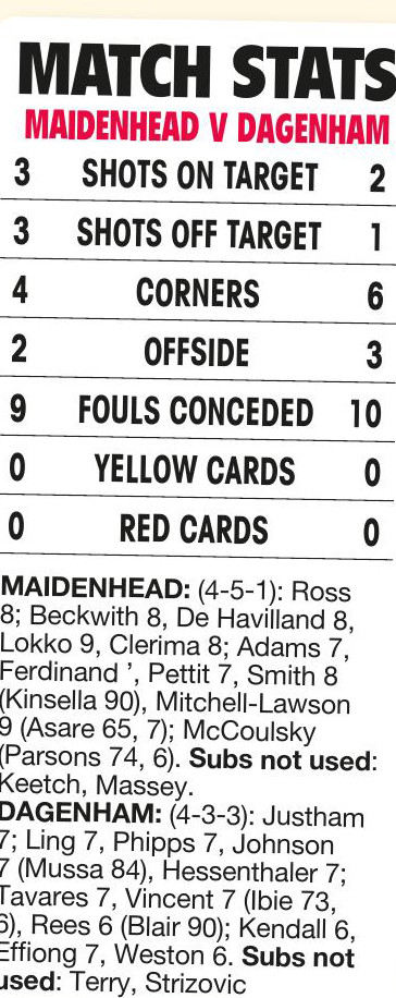 Dagenham stepped up their efforts in the final 25 minutes, but the Maidenhead defence stood firm.