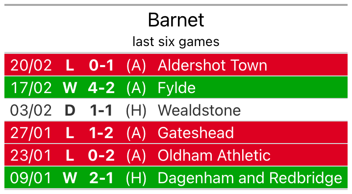 Their last meeting was on September 26, when Barnet won 4-2 away.