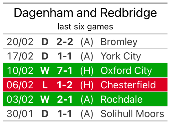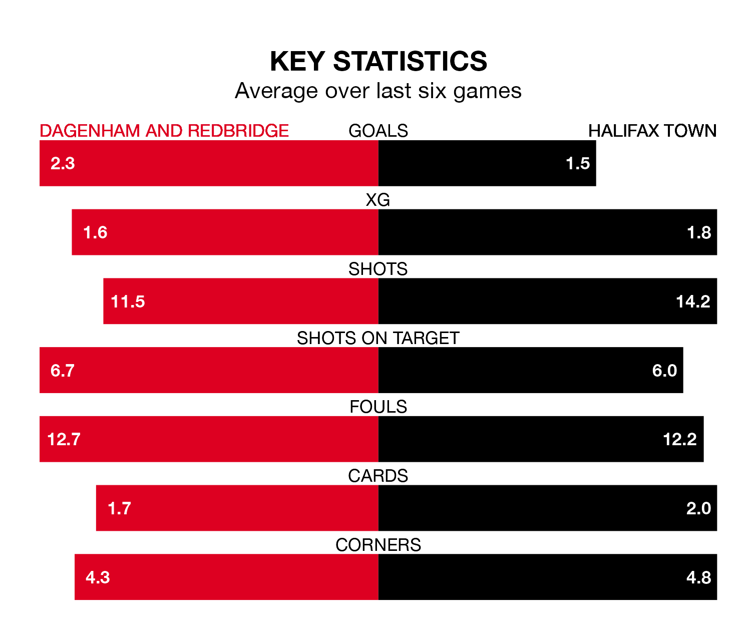 Halifax have picked up nine points from their last six games, and they face a Dagenham & Redbridge side who have lost their last two matches, and collected the same number of points from the last possible 18.