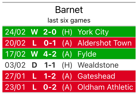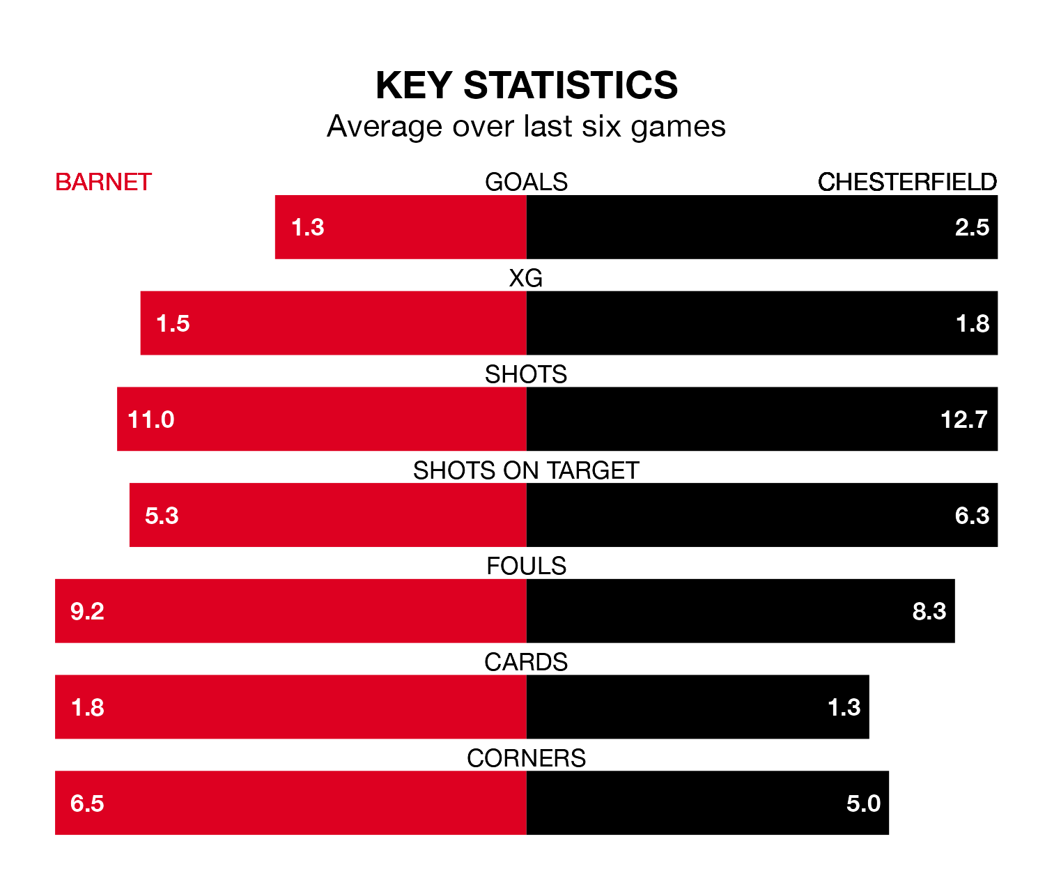 Barnet are also above average scorers, with 1.9 goals per game, compared to a league average of 1.5. They have conceded 1.4 goals per game.