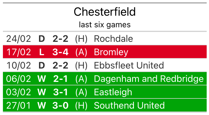 Their last meeting was on November 11, when Chesterfield won 4-2 at home.