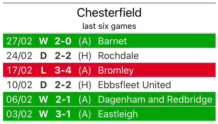 Chesterfield beat Barnet 2-0 last time out, on Tuesday, with Michael Jacobs and Tom Naylor on the scoresheet.