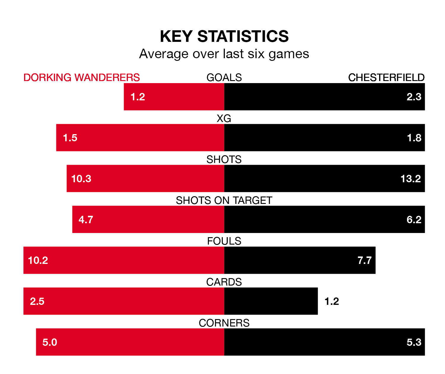 Dorking, meanwhile, are below average scorers, with 1.1 goals per game, compared to a league average of 1.5. They have conceded 1.7 goals per game.