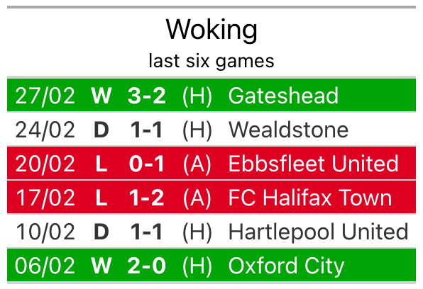 Woking are in mixed form in the National League, with two wins and two draws from their last six games.