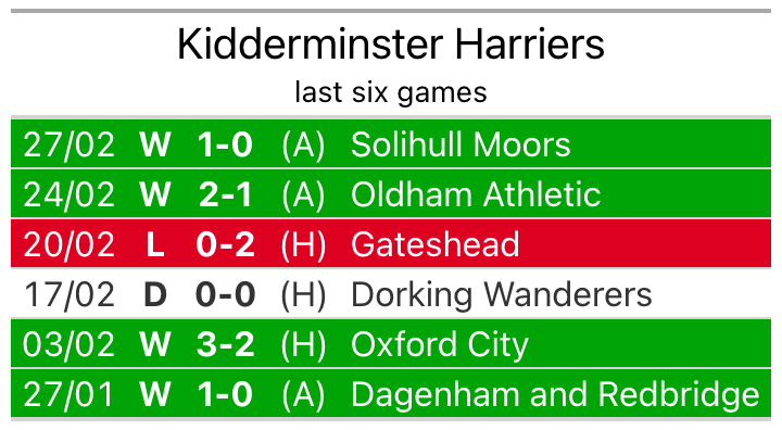 They travel to play a Kidderminster Harriers side 21st in the standings, who also won their last match, 1-0 against Solihull Moors.