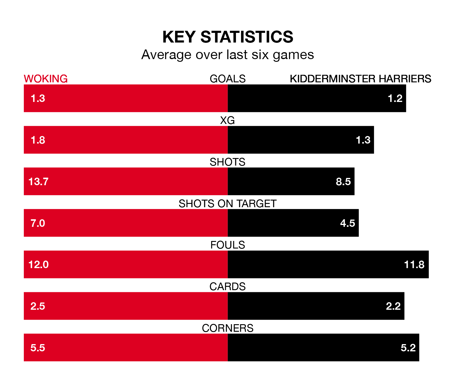 With four wins and a draw over that period, Kidderminster Harriers’s form is better – they have taken 13 points from 18, compared to the Cardinals’s eight.