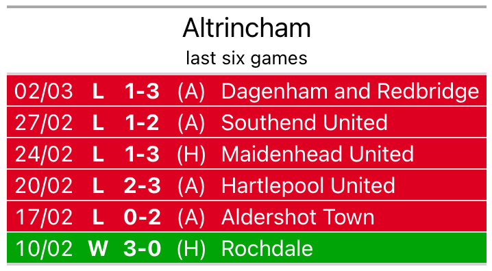 Altrincham’s struggles have left them with just three points from their last six National League matches, while their opponents have earned seven from a possible 18.