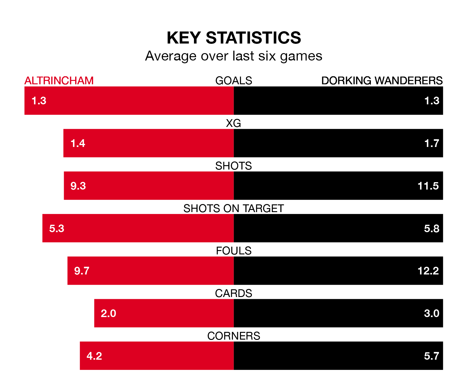 Dorking, meanwhile, are below average scorers, with 1.2 goals per game, compared to a league average of 1.5. They have conceded 1.7 goals per game.