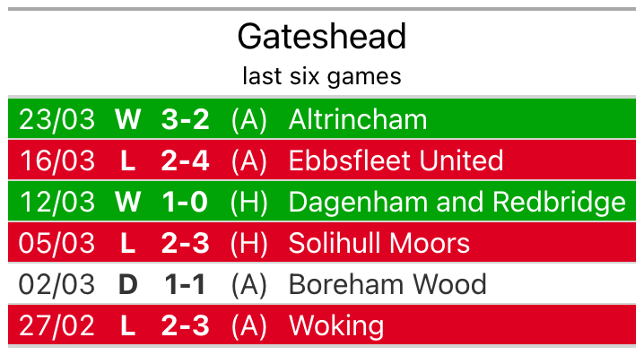 Gateshead are in mixed form in the National League, with two wins and a draw from their last six games.