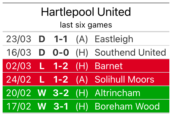 Hartlepool, meanwhile, are average scorers, with 1.5 goals per game. They have conceded 1.7 goals per game.