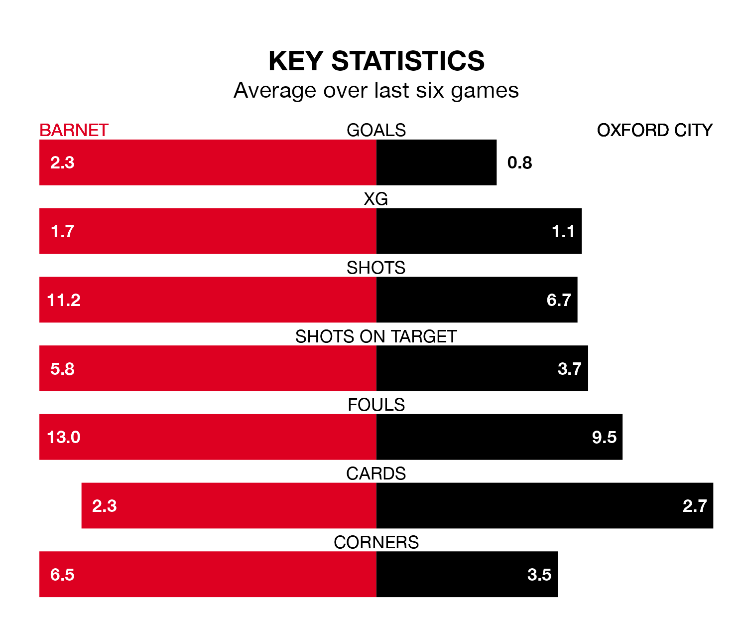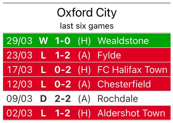 Oxford, meanwhile, are below average scorers, with 1.2 goals per game, compared to a league average of 1.5. They have conceded 2.1 goals per game.