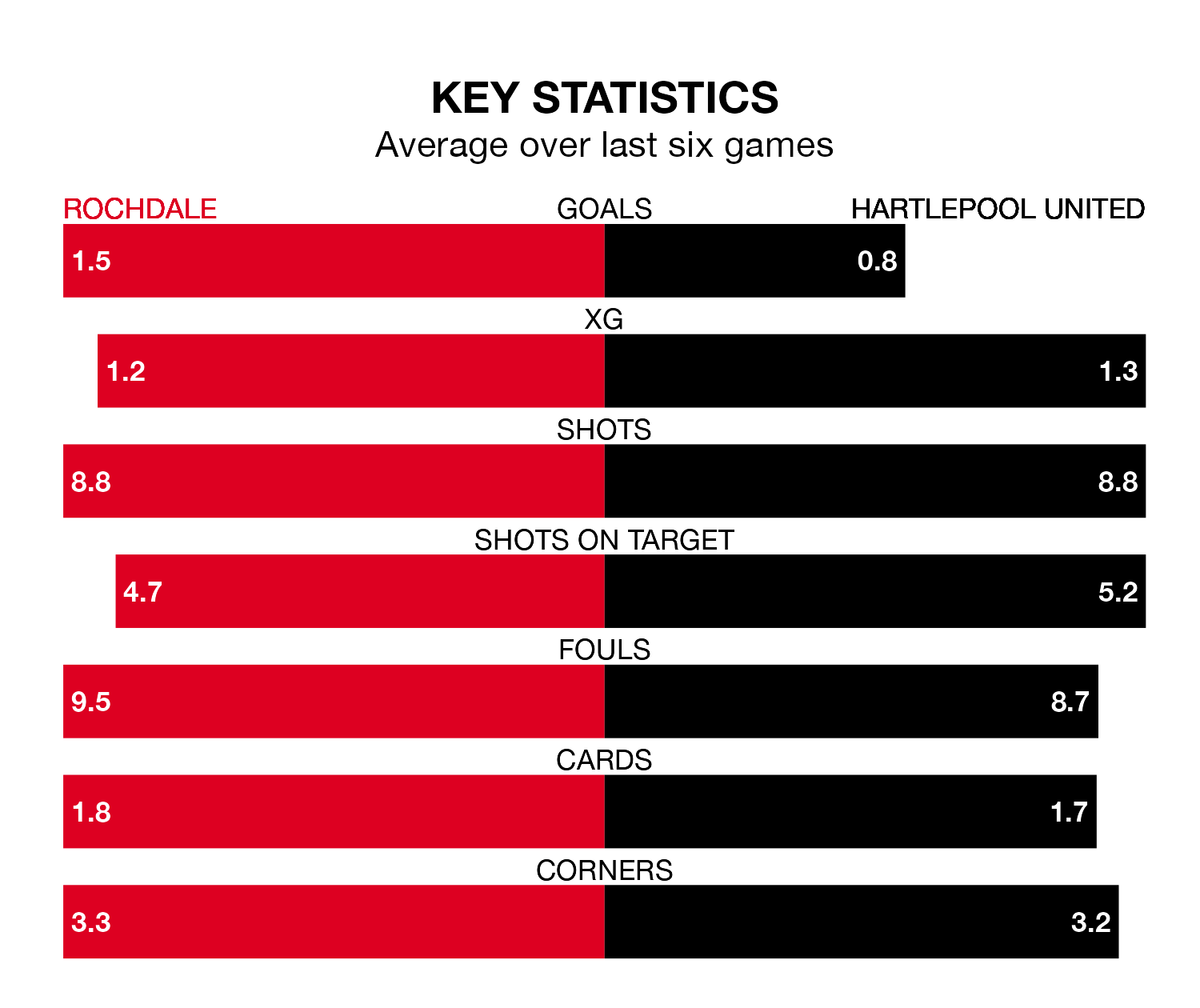 In the last 10 years, Rochdale and Hartlepool have played each other on six occasions. They won three each.