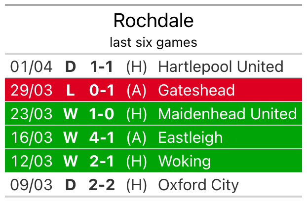 Rochdale drew 1-1 with Hartlepool United last time out, also on Monday, with Devante Rodney on the scoresheet.