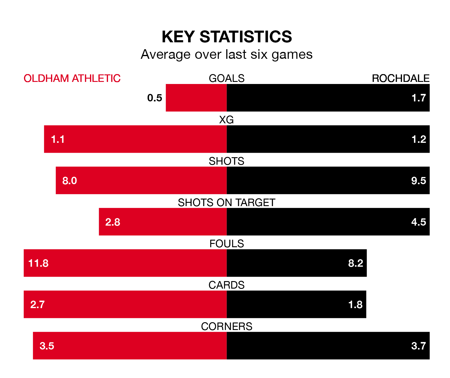 Rochdale, meanwhile, are average scorers, with 1.5 goals per game. They have also conceded 1.5 goals per game.
