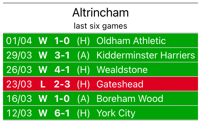 Their last meeting was on March 5, when Altrincham won 2-1 at home.
