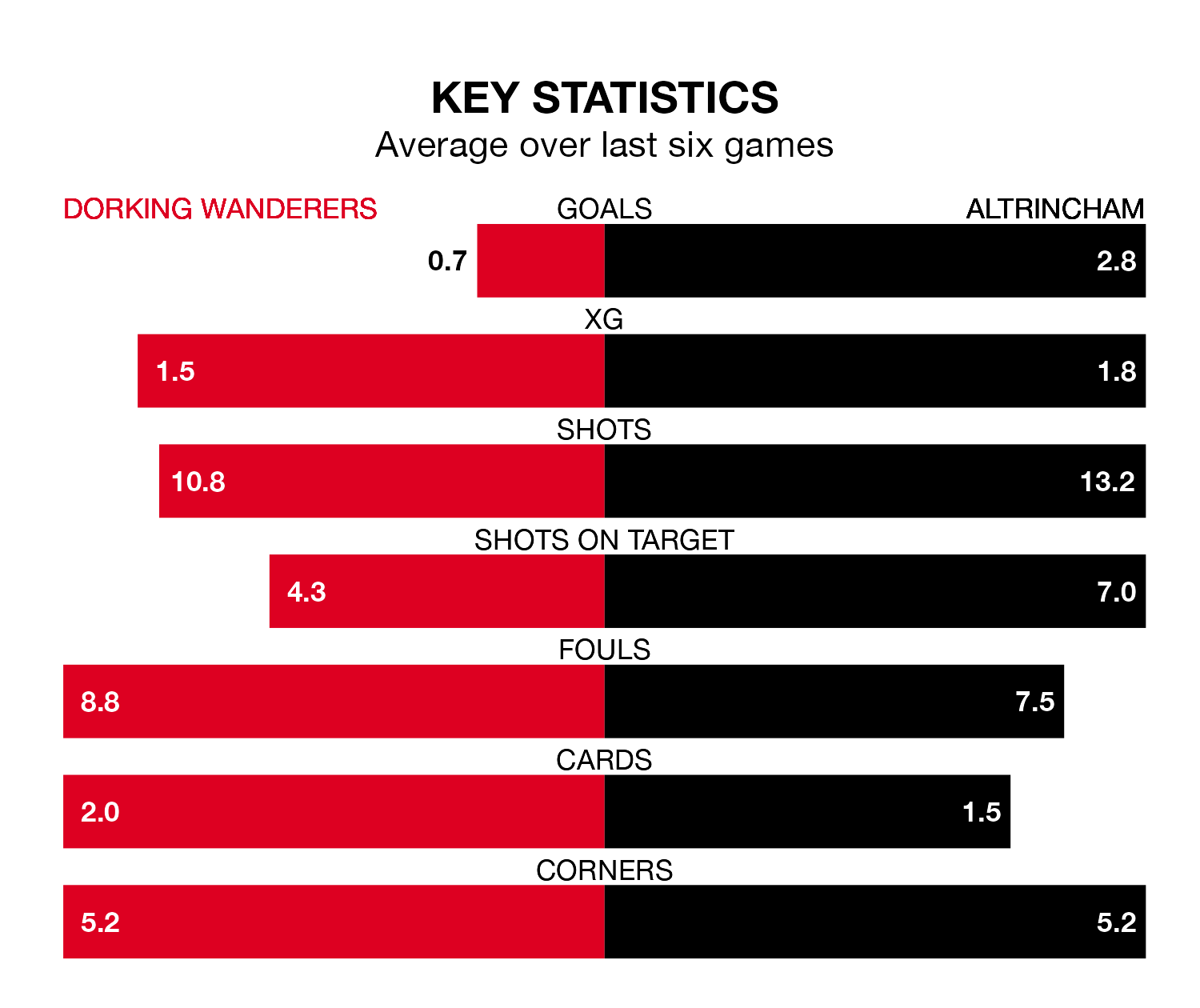 The home team, meanwhile, are below average scorers, with 1.1 goals per game, compared to a league average of 1.5. They have conceded 1.8 goals per game.