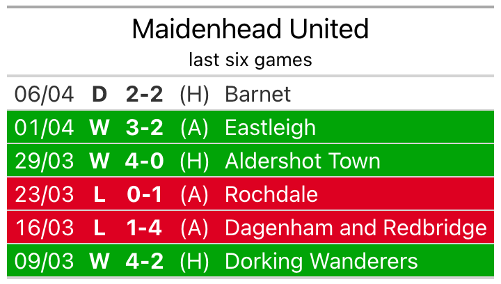 Maidenhead are in mixed form in the National League, with three wins and a draw from their last six games.