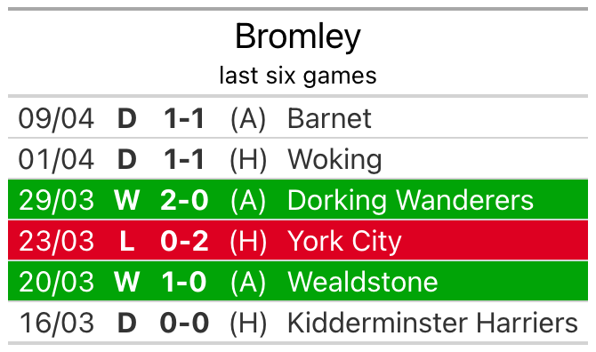 Bromley are in mixed form in the National League, with two wins and three draws from their last six games.