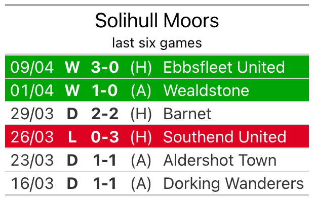 Their last meeting was on April 6, when Solihull Moors won 2-1 away.