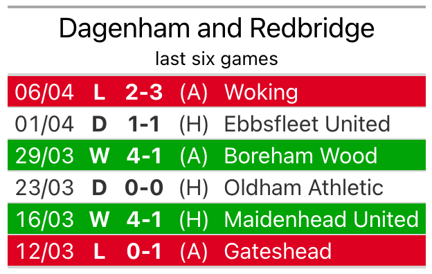 Dagenham & Redbridge are also average scorers, with 1.5 goals per game. They have conceded 1.3 goals per game.