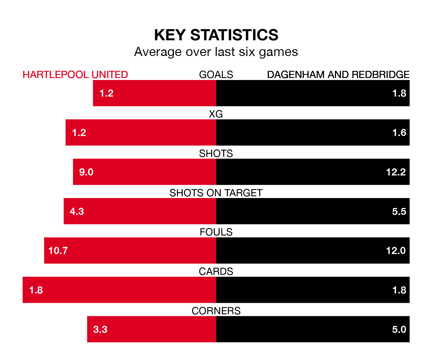 On average, Pools scored 1.5 goals and Dagenham & Redbridge 1.1 in those matches.