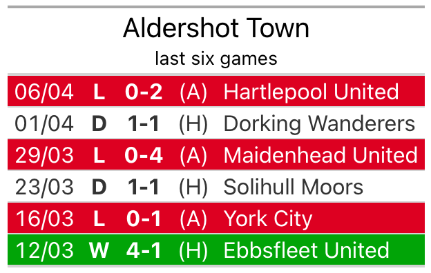 Their last meeting was on September 23, when Aldershot won 2-1 away.