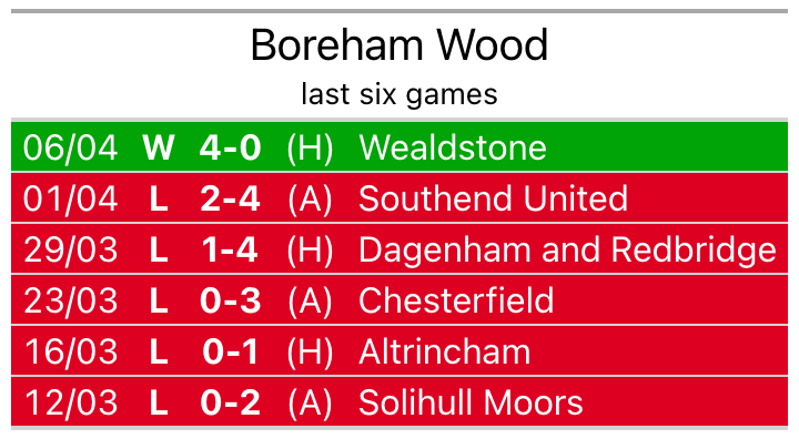 After securing all three points with a 4-0 victory over Wealdstone on April 6, the Wood sit 21st in the National League.