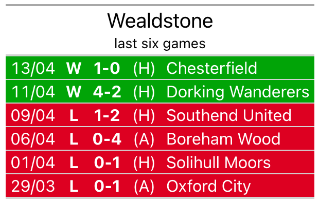 In their last league match, on Saturday, Wealdstone beat Chesterfield 1-0 at home, with their goal scored by Dillon Senan De Silva.