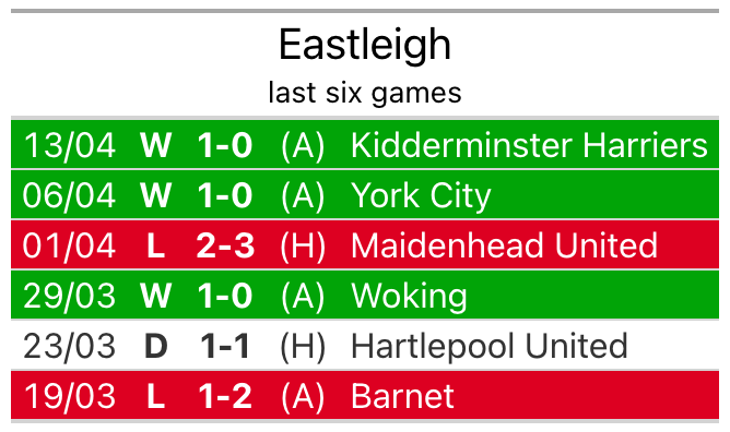 Eastleigh, meanwhile, are above average scorers, with 1.6 goals per game, compared to a league average of 1.5. They have conceded 1.9 goals per game.