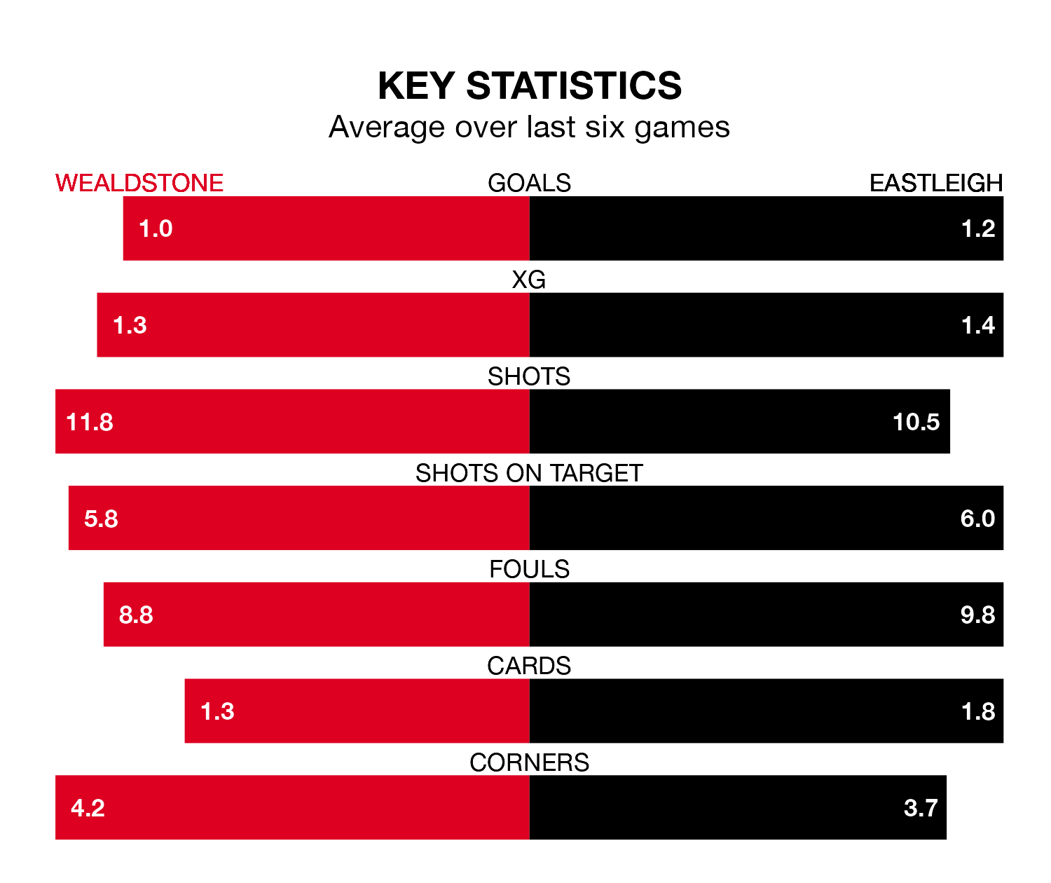 On average, Wealdstone scored 1.1 goals and the Spitfires 1.6 in those matches.