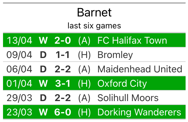 Barnet’s last match was on Saturday, a 2-0 win against FC Halifax Town, with Callum Stead and Daniele James Collinge getting the goals for the Bees.