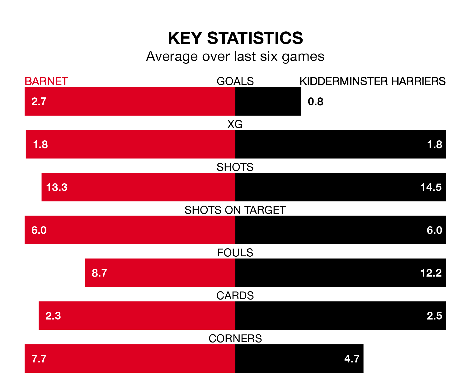 With a win and two draws over that period, Kiddy’s form is much worse – they have taken five points from 18, compared to Barnet’s 12.