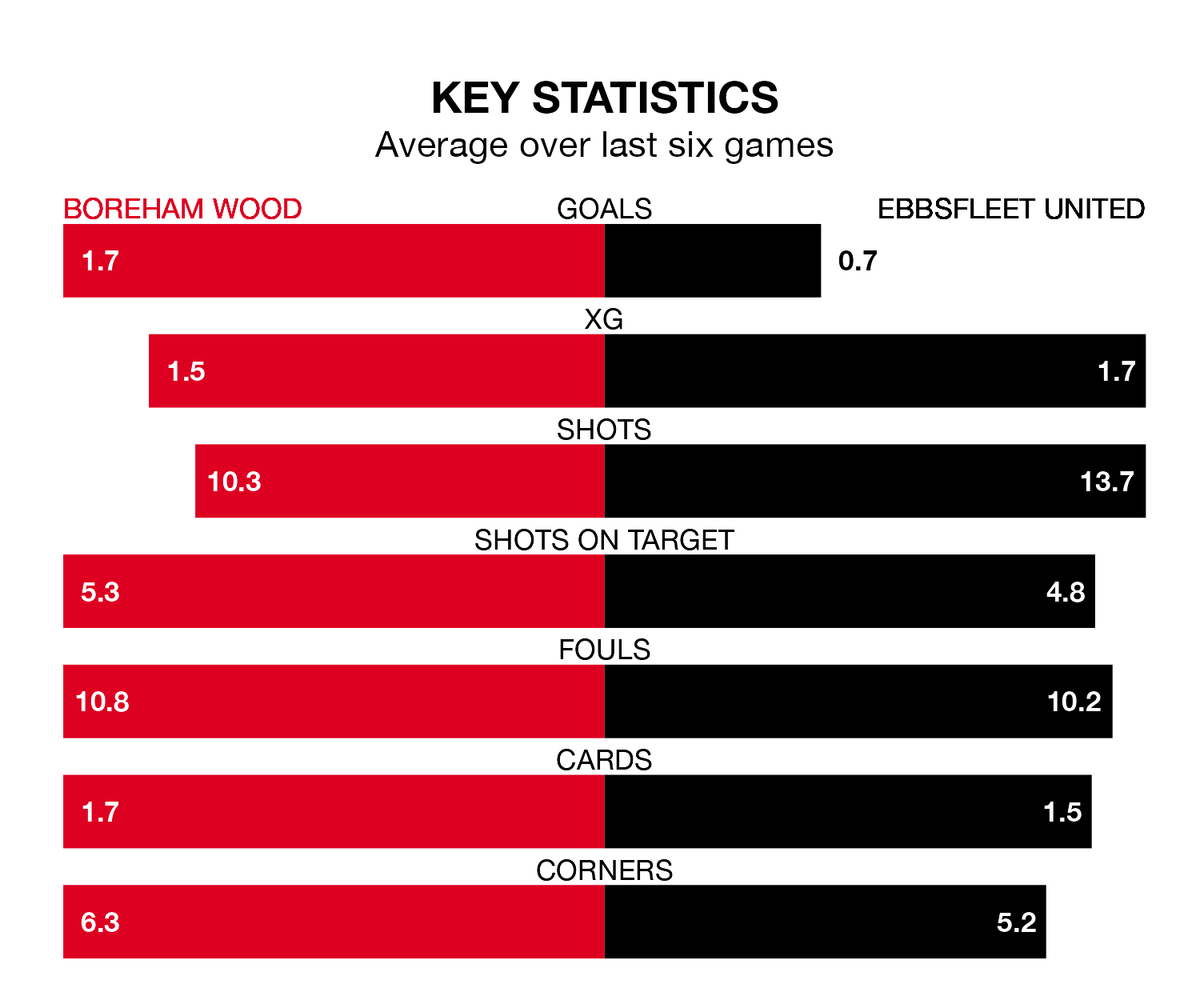 On average, the Wood scored 1.1 goals and Ebbsfleet 1.6 in those matches.