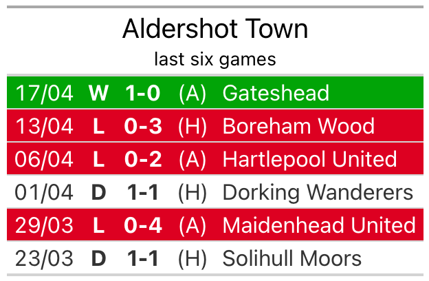 Their last meeting was on September 30, when Aldershot won 3-2 at home.
